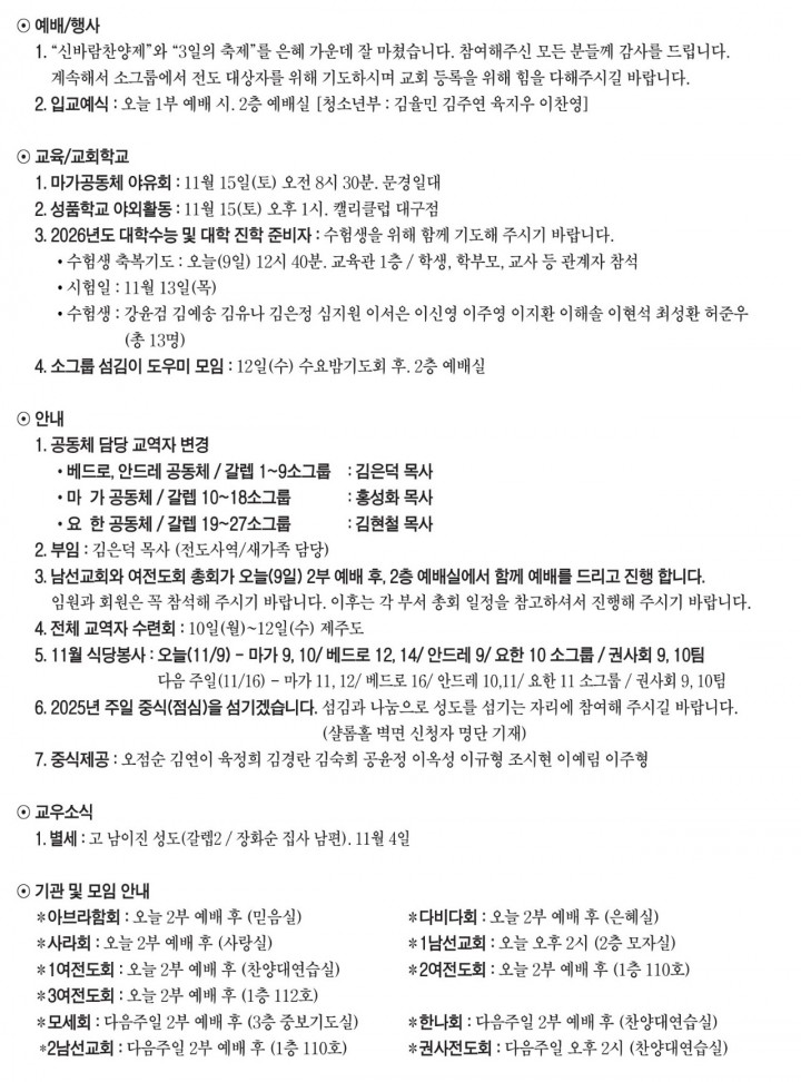 Àλ縻°ú ¿ì¸®±³È¸ ¿¬Çõ°ú ¿¹¹è ½Ã°£ ¾È³», ±×¸®°í ã¾Æ¿À½Ã´Â ±æ ¾È³».